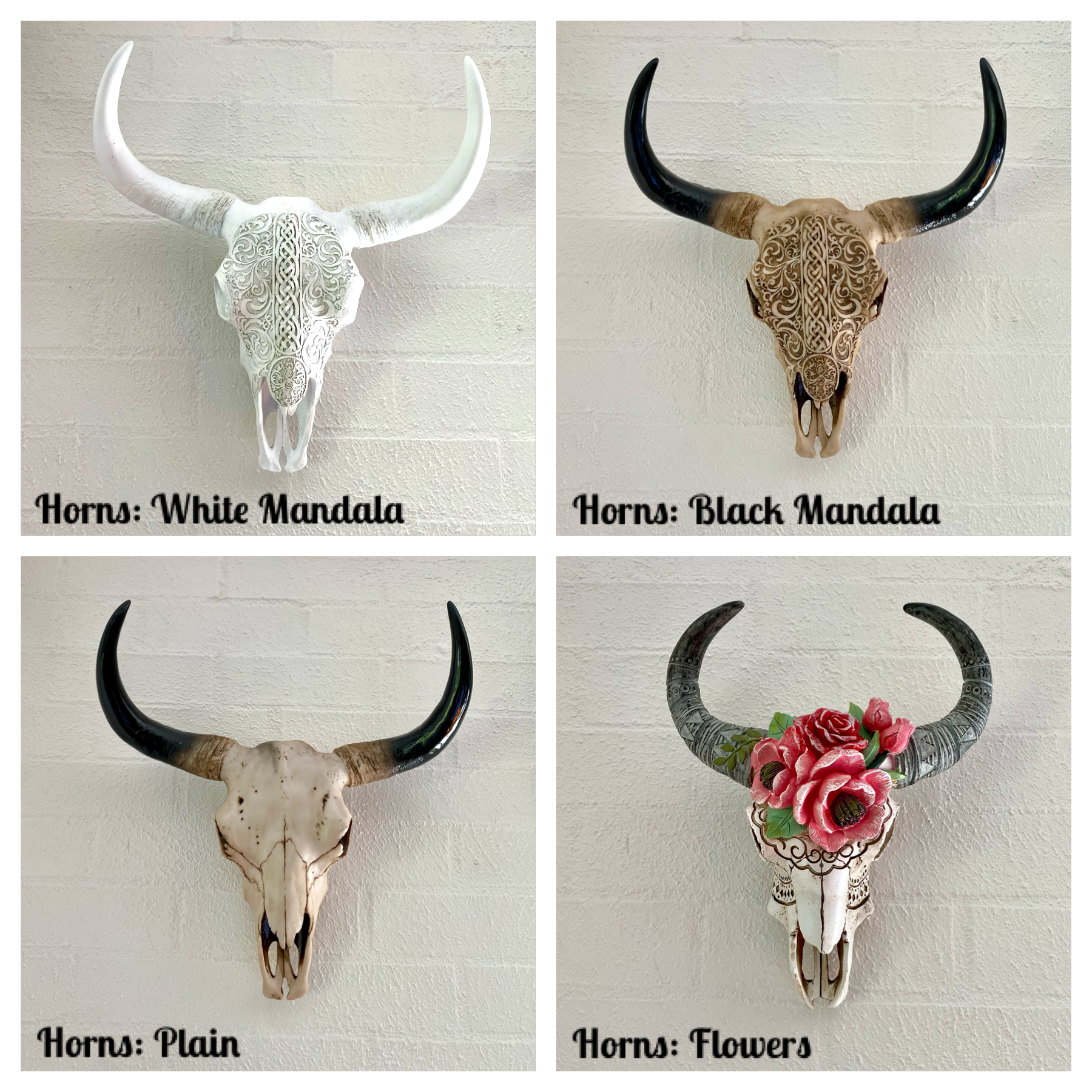 *Please note the "Horns: Flowers" are smaller than the other types. Don't forget to check all dimensions before purchasing.